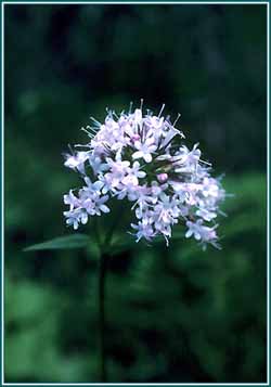 Valerian (Valeriana officinalis, Valerianaceae) is a hardy perennial flowering plant, with heads of sweetly scented pink or white flowers. Valerian is a perennial plant that grows to 3 feet and prefers full sun, average to rich well-drained soil and its roots are harvested for medicinal use in the fall of their second year.