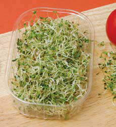 Trays - the best way of growing light seeking sprouts. They have a large surface area to soak up more light, can be stacked easily to save space, and most importantly, allow the sprouts to grow naturally; upwards. This allows several croppings of the more and less vigorous plants so all can be harvested at their nutritional peak. Cover the bottom of the tray with a thin layer of soaked seeds. Make sure it is at least 2 inches high and has drainage holes smaller than the seeds. Any sort of tray can be used ,but if the roots have something to attach to the sprouts will do better and are easier to rinse, drain and clear hulls from.