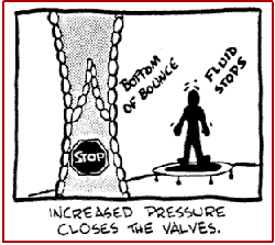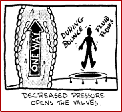 The lymphatic system is not connected up to the heart, so it has to rely upon some other activity to create the necessary pumping action it needs to circulate. The three most important methods of lymphatic circulation are external massage, muscle activity, and vigorous exercise. The lymphatic system is filled with millions of one-way valves, which allows lymph fluid to flow unidirectional – usually upward away from gravity. Almost anything that can stimulate the movement of lymph fluid inside the lymph vessels of the system is healthy, but the most efficient way to stimulate the flow of lymph fluid is by rebounding. The up and down rhythmic bouncing causes all of the one-way valves to open and close simultaneously increasing lymph flow as much as fifteen times! Rebounding does that.